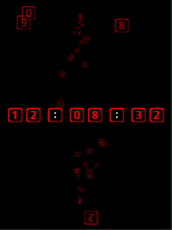 Moving digit Clock - Digits bounce around the screen and sometimes align to tell the time.